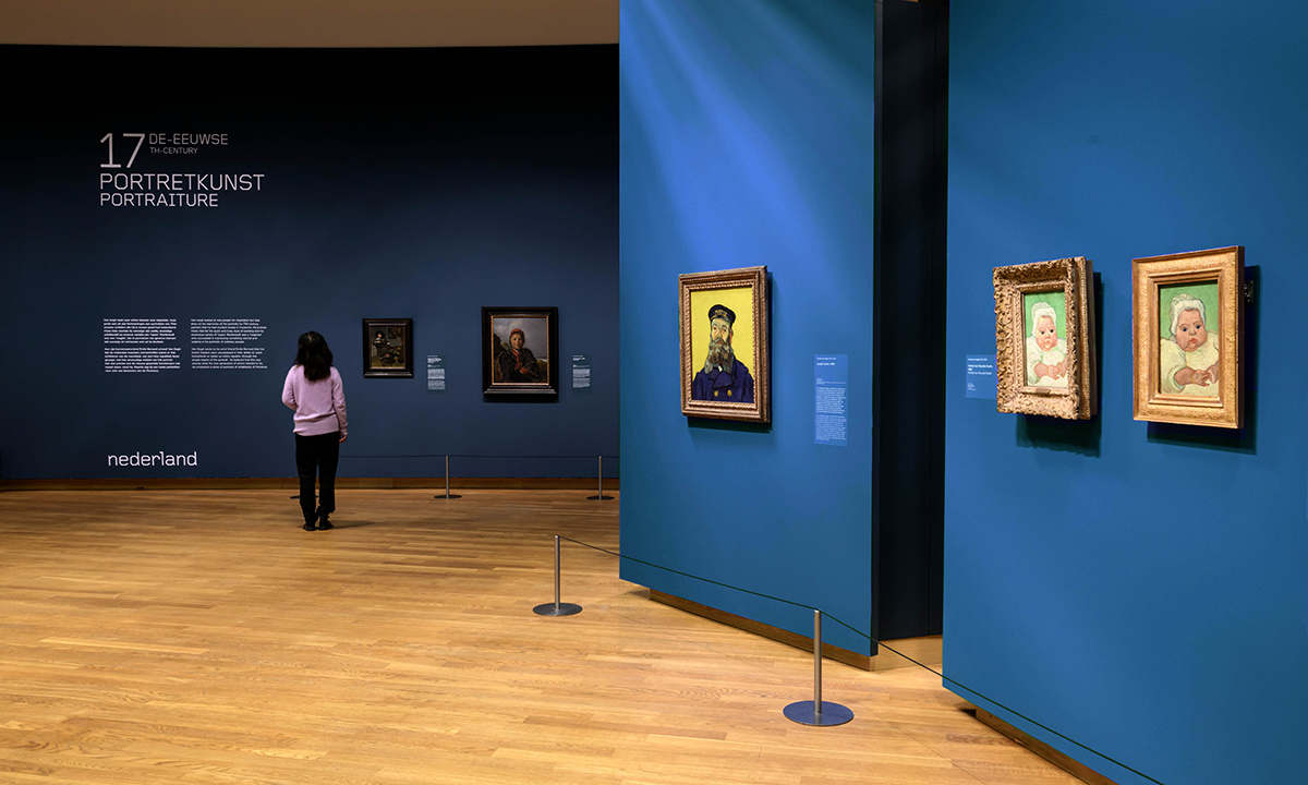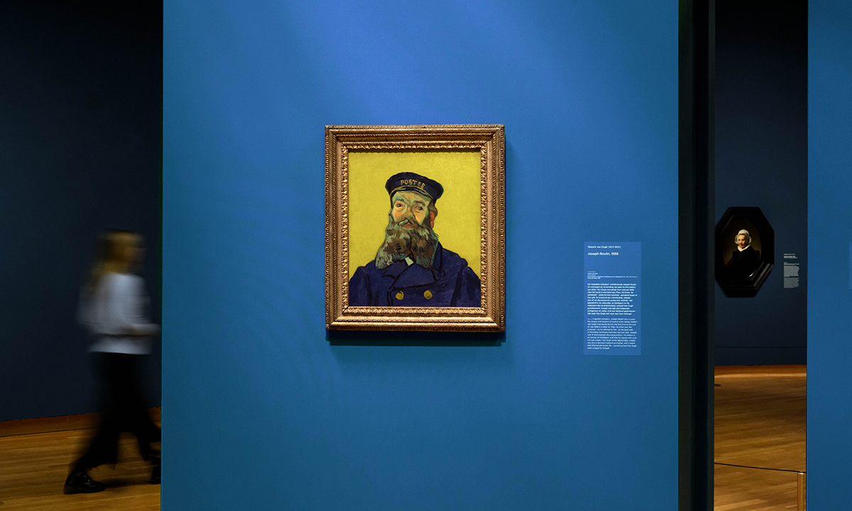 We have created an intimate yet spacious ‘family circle’, immersed in a sea of blues and yellows. The striking portraits face one another, offering glimpses through to 17th-century works by Rembrandt and Hals—artists who inspired Van Gogh in his lifelong exploration of portrait painting.